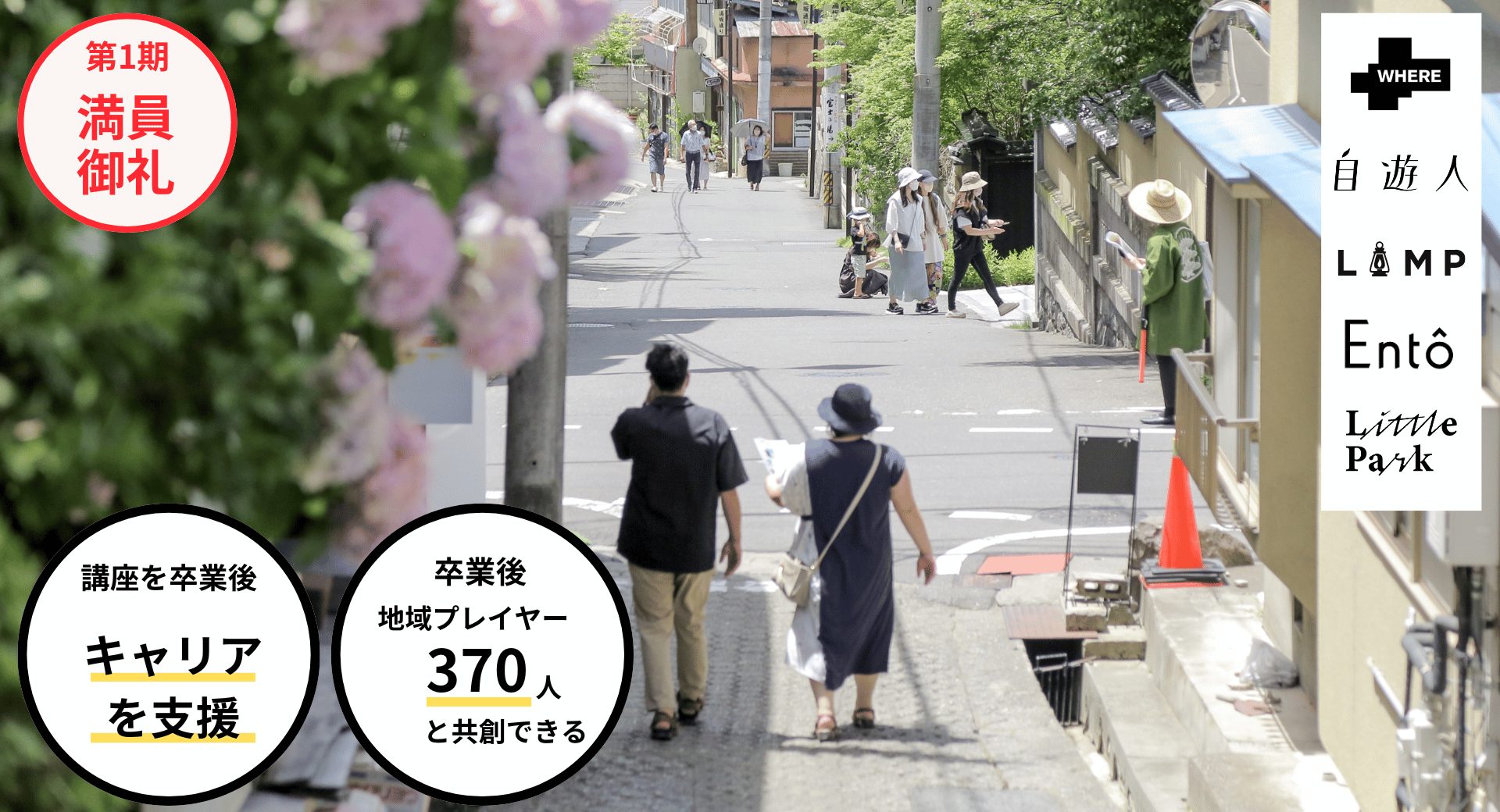 卒業後は、『LAMP』『里山十帖』『Entô』など、共創パートナーによる求人の機会をご用意。 本講座では、観光を通じてまちを育むことに共感し、未来に続く観光経営を実践していく人材を育成・輩出しています。