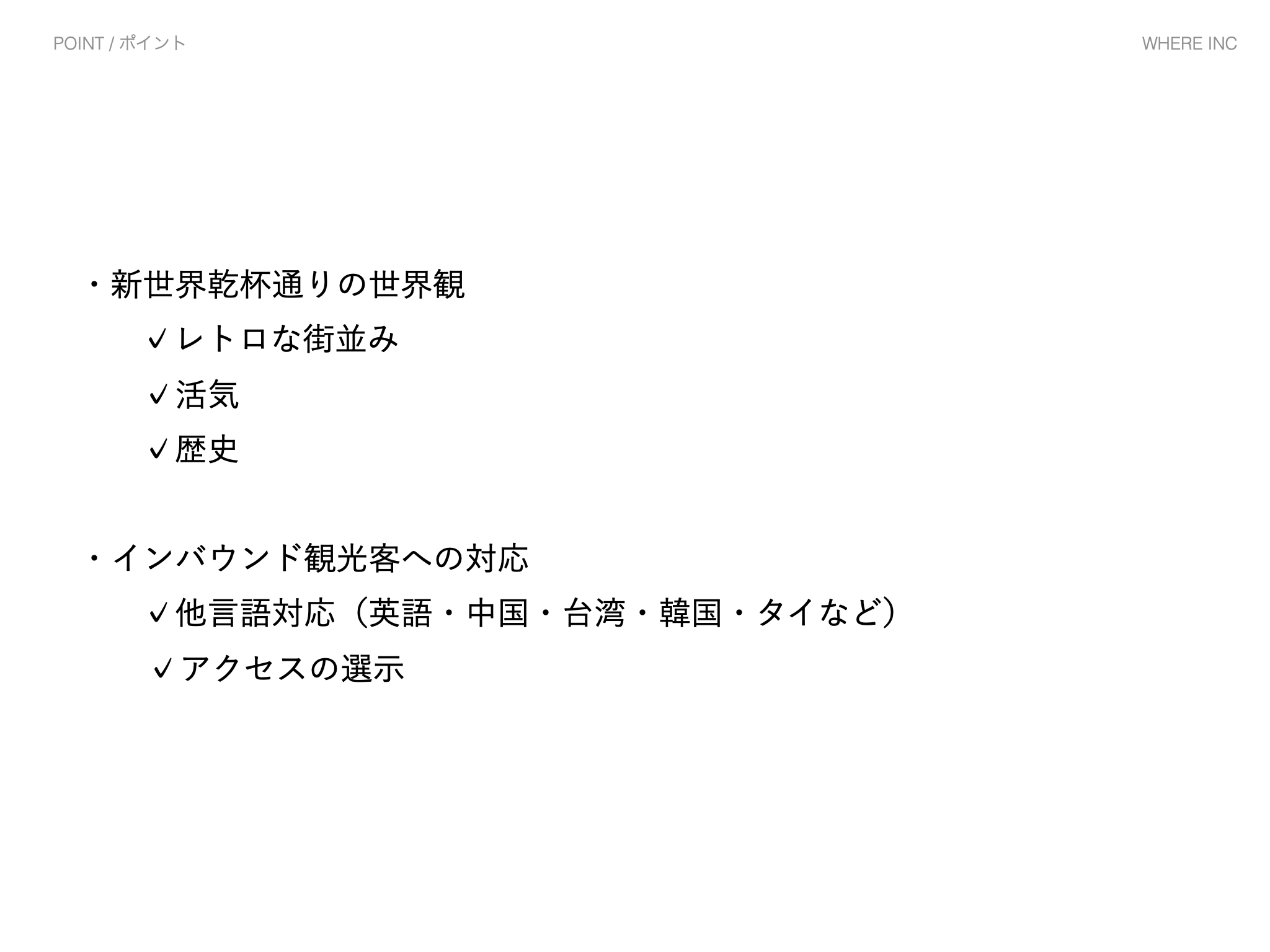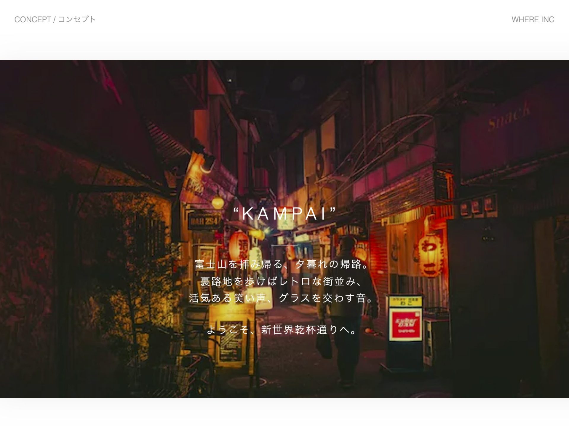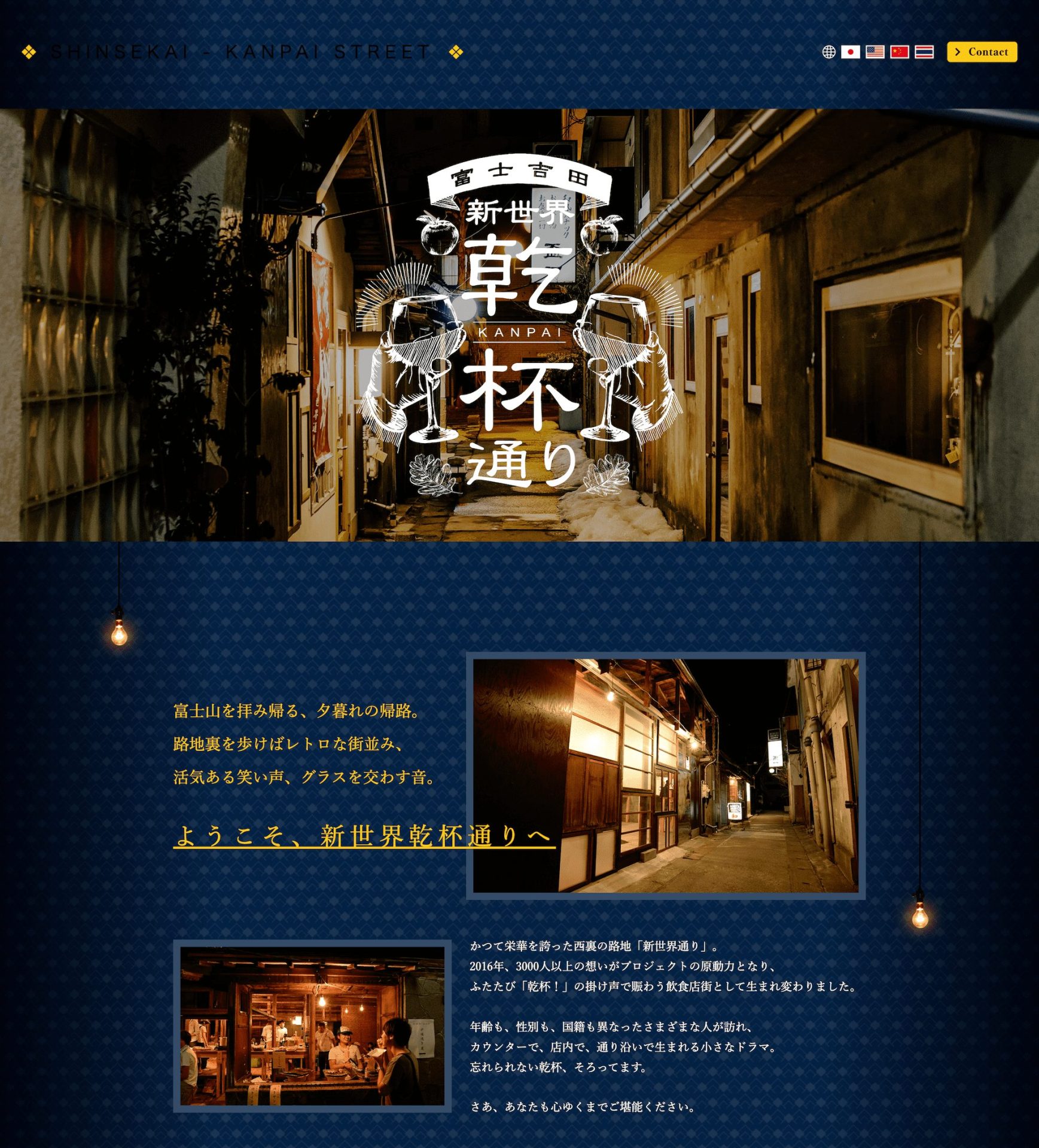 「地元の人達が大好きな新世界乾杯通りの魅力をもっと伝えたい」。合同会社新世界乾杯通り代表のじゅんべさんからいただいたこのリクエストに対して、私たちはホームページ制作だけでなく、伝わることを目指して、新世界乾杯通りのコンセプト、ロゴ、HP制作まで一貫して実施。さらに富士山の麓であり訪日外国人のポテンシャルを感じて多言語化対応も実施して、世界から人を呼び込めるようにしました。