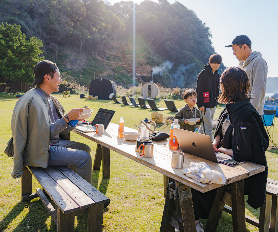 1泊2日という時間と、最寄駅からも1時間以上車でかかる会場でも当日約30名の関係者が集い、各々が「NO LOGIC」のコンセプト通り、サウナや海でリフレッシュをしたり、焚き火の前で語り込んだりと、楽しい時間を満喫すると共にその後の事業やプロジェクトにも繋がる関係性構築が生まれた。