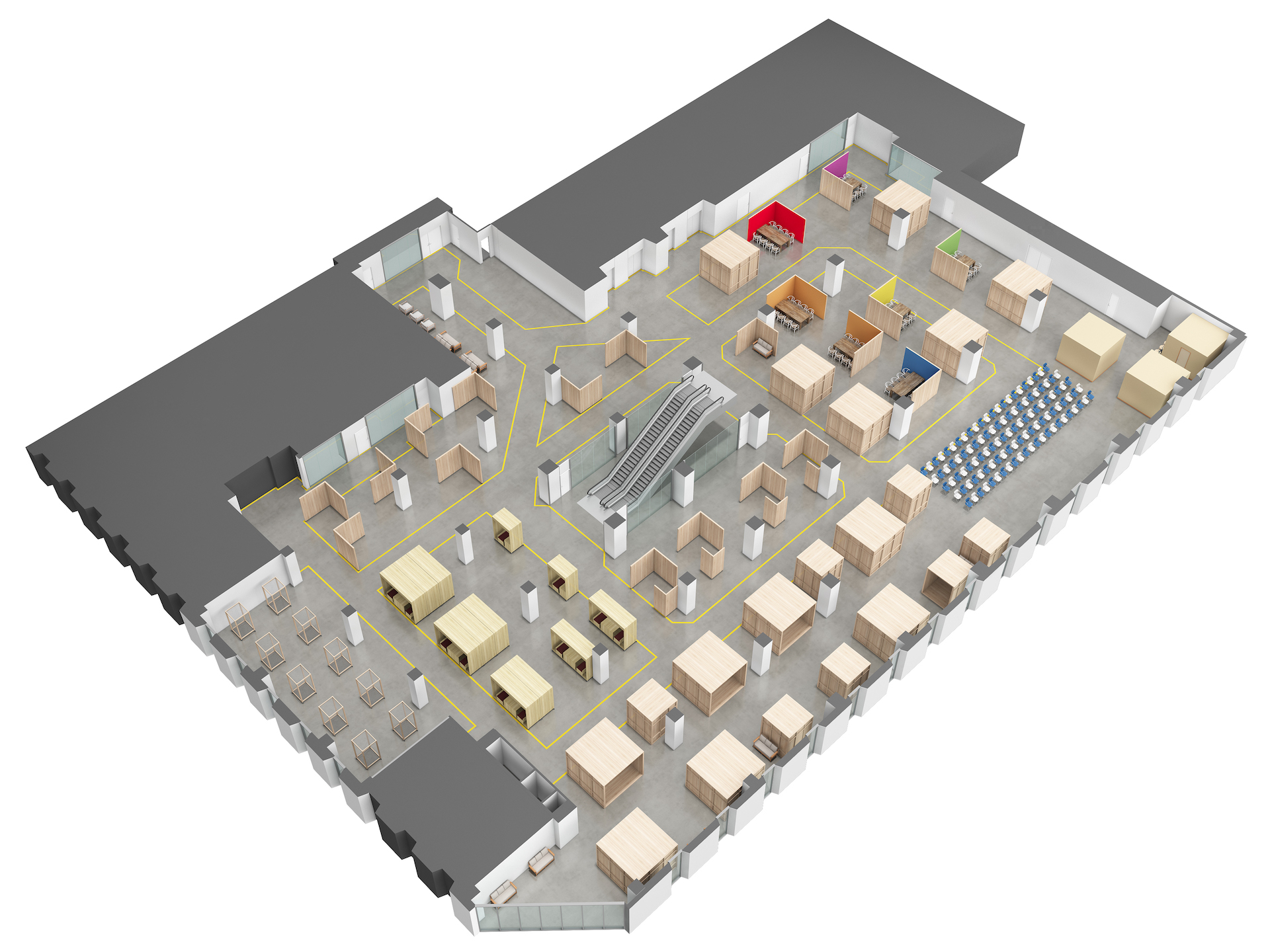 さらに、今回の仮説検証を元に、ビジネスモデルの再構築も実施し、新規ビジネスの際に重要になってくる人材にも目を向け、組織体制も調整を行いながら、消費と生産が交差する場として百貨店が愛され継続し続けるプランをご提案。「百貨店版コワーキングスペース」として、移動式の小さい箱をフロア内に設置し、新しいことが巻き起こっていく路地と、ハードル低く新しいことがはじめやすいスペースを生み出し、従来の百貨店のイメージを打ち砕くものとなった。